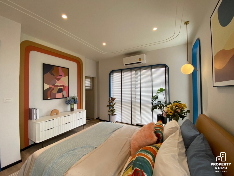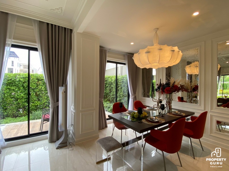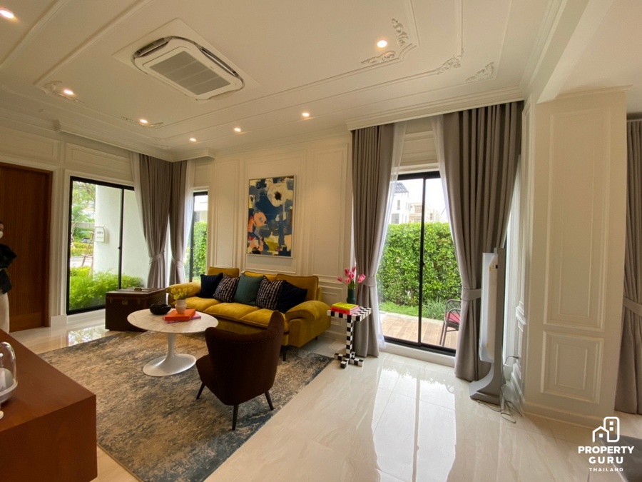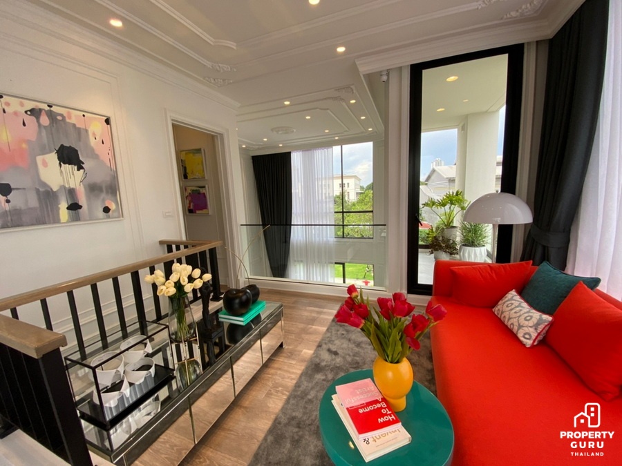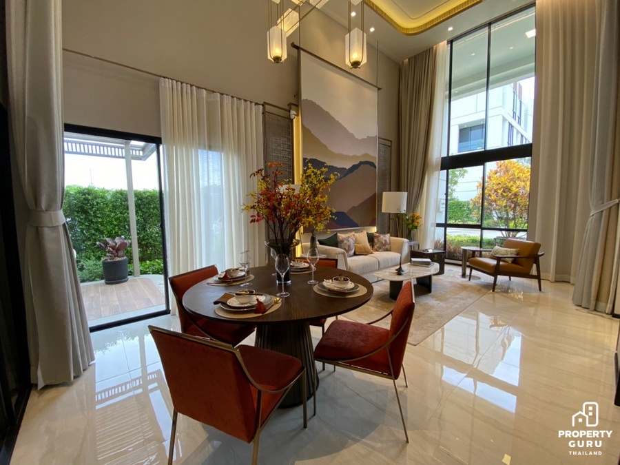 โดดเด่นด้วยฟังก์ชัน DUPLEX MASTER BEDROOM เพดานสูงกว่า 5.65 เมตร พร้อมส่วนอเนกประสงค์ ชั้นลอยภายในห้องนอน ซึ่งเหมือนยกรูปแบบ Duplex Condominium มาไว้ในทาวน์โฮม DOUBLE VOLUME LIVING เพดานสูงกว่า 5 เมตร พร้อมกระจกบานสูง