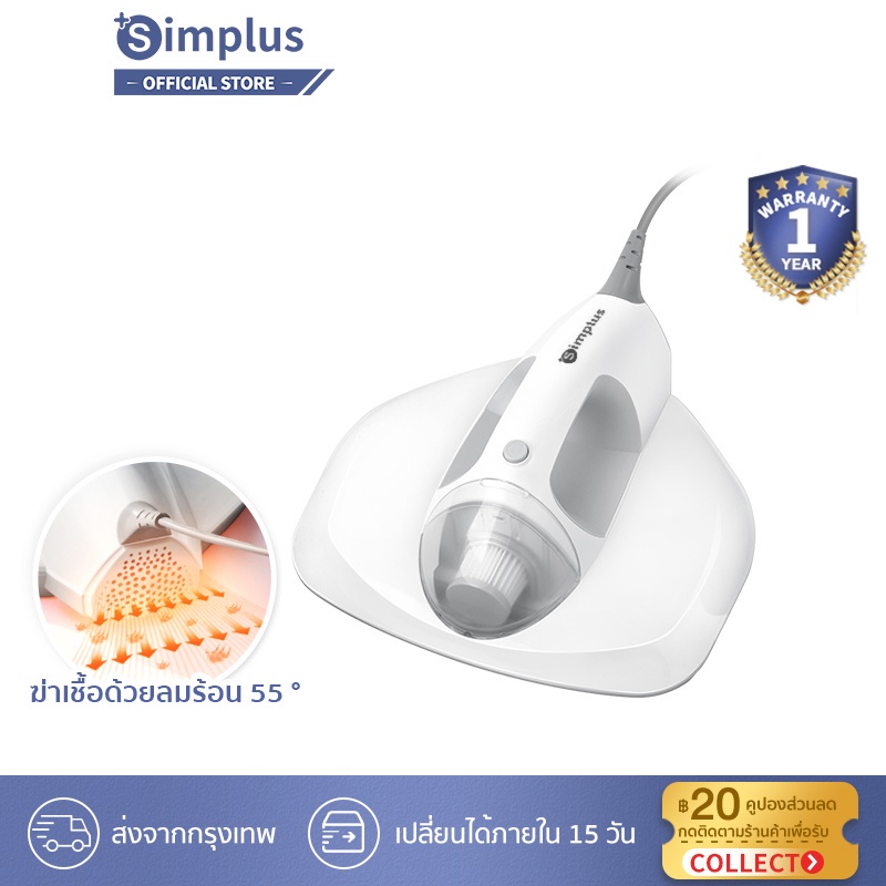 5. Simplus เครื่องดูดกำจัดไรฝุ่นทรงพลัง 13000PA ฆ่าเชื้อด้วยลมร้อน ลดความชื้นและการกำจัดกลิ่น CMYH001