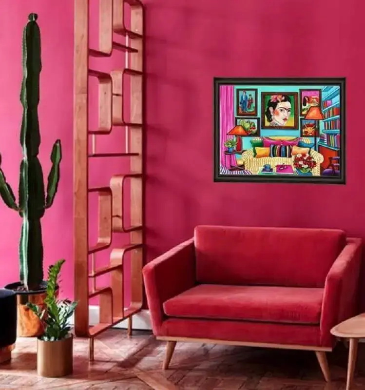 หากใครที่ถูกใจสีแพนโทนของปีนี้ แล้วอยากเนรมิตรให้ทั้งบ้านเป็นสีนี้ ก็สามารถตกแต่งได้ด้วยการทาสีผนังเป็นสี Viva Magenta ไปเลย โซฟาก็ใช้สีเดียวกันไปเลย ทุกสิ่งทุกอย่างเป็นสีเดียวกันแบบจัดเต็ม ให้อารมณ์ที่ดูสนุกสนานดีเหมือนกันค่ะ (Source: vivadecora)