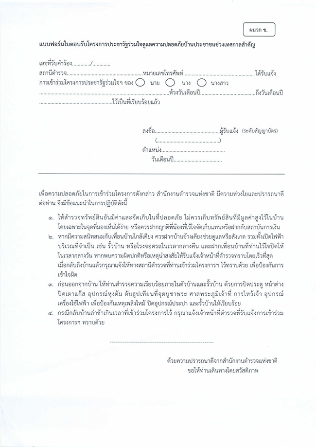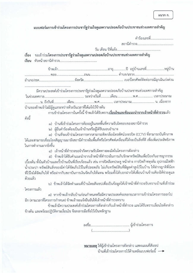 วิธีเข้าร่วมโครงการ "ฝากบ้านไว้กับตำรวจ"