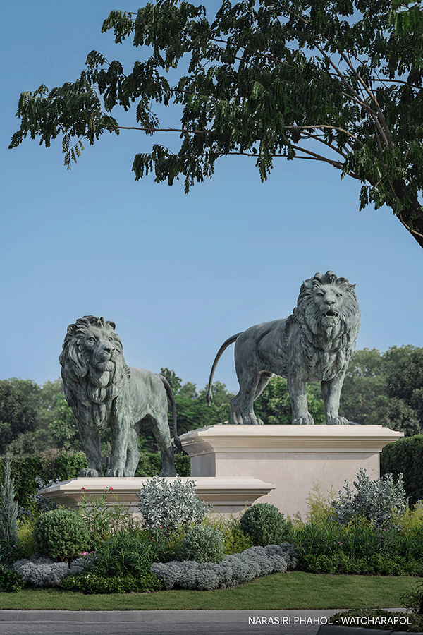 ส่วนกลางของที่นี่สวยอลังการเหมือนไม่ได้อยู่ที่ประเทศไทย ซึ่งที่รู้สึกแบบนั้นเพราะว่าผังโครงการออกแบบให้สอดคล้องกับผังเมืองกรุงปารีส สถาปัตยกรรมและงานประติมากรรมอันเป็นเอกลักษณ์ ตั้งแต่บริเวณทางเข้าโครงการออกแบบให้มีความสง่างาม ประติมากรรมสิงโตมีปีก (Lelion De Victoire) ที่สื่อถึงความก้าวหน้าในด้านธุรกิจและความเจริญรุ่งเรือง