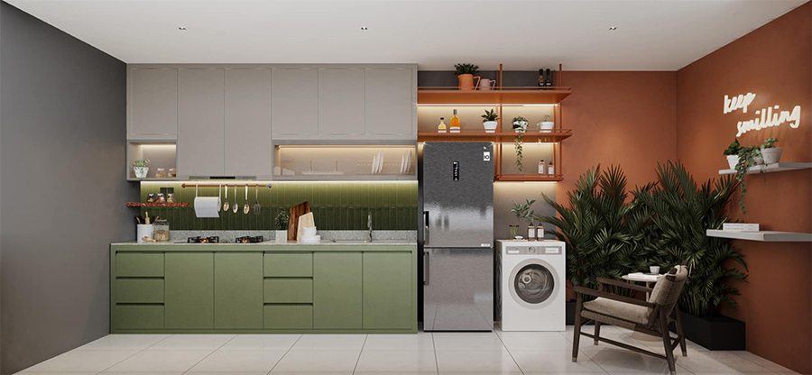 ครัวไทยขวัญใจแม่บ้าน และยังเหลือพื้นที่สำหรับเป็น โซนห้องซักล้างในบ้าน (Laundry Room) ด้วย
