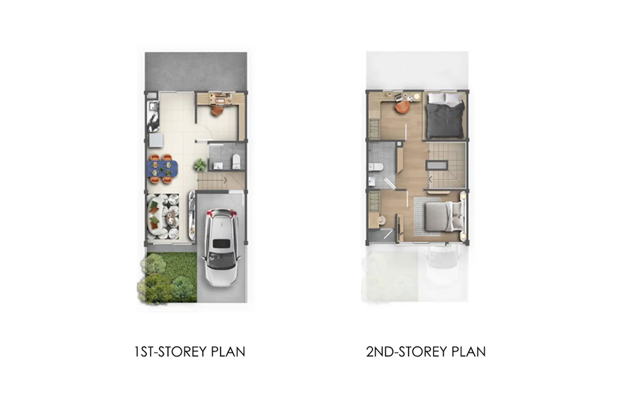 จะเห็นได้ว่าทั้ง 3 แบบ จะมีห้องให้ที่ชั้น 1 หมดทุกหลัง เพราะใส่ใจถึงความต้องการของผู้อยู่อาศัยในทุกๆ ช่วงวัย พื้นที่ชั้น 1 ถือเป็นโซนที่ทุกคนได้รวมตัวกัน ได้ทำกิจกรรมร่วมกันและเห็นหน้ากัน ช่วยเชื่อมสัมพันธ์ในครอบครัว ดังนั้นห้องที่ชั้นล่างนี้จะเป็นห้องทำงานก็ได้ความเป็นส่วนตัว แต่ในขณะเดียวกันก็ไม่ห่างไกลจากครอบครัว หรือจะเป็นห้องผู้สูงอายุที่ไม่ต้องขึ้นบันไดให้เมื่อย เข้า-ออกสะดวก