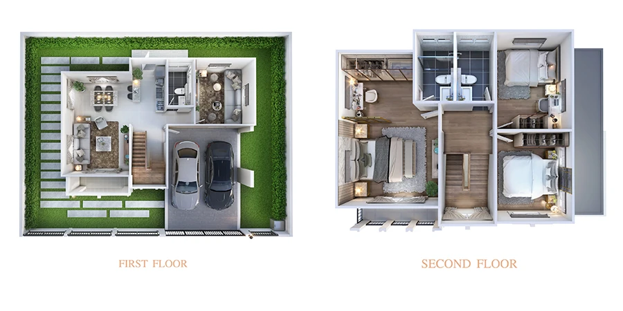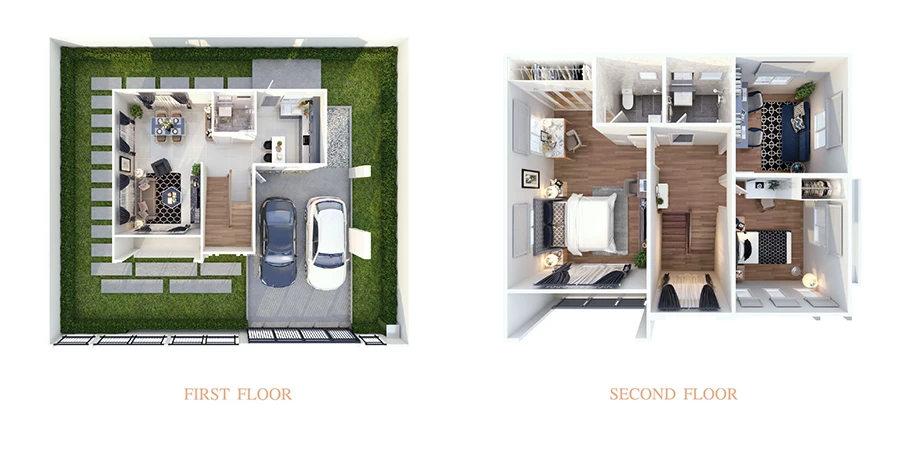 บ้านเดี่ยว CANNES พื้นที่ใช้สอย 174 ตร.ม.* 4 ห้องนอน พร้อมระเบียงชมวิว 3 ห้องน้ำ 1 ห้องรับแขก ส่วนเตรียมอาหาร ครัวแยกเป็นสัดส่วน ที่จอดรถ 2 คัน