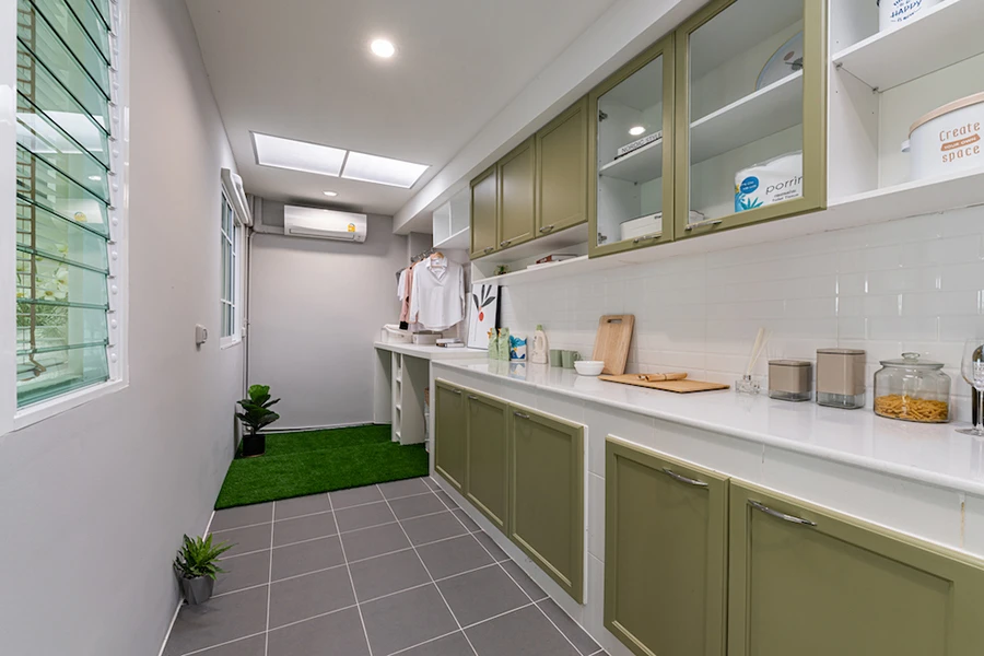 คนไทยก็ต้องมาคู่กับครัวไทยหลังบ้านทางโครงการก็จัดเตรียมเป็นพื้นที่ให้พร้อมสำหรับการต่อเติม หน้าบ้านกว้างต้องจอดรถได้ 2-4 คันหรือแม้แต่ห้องน้ำก็ต้องคำนึงถึงระบบระบายอากาศ เพื่อนสุขอนามัยที่ดีของคนในบ้านด้วย