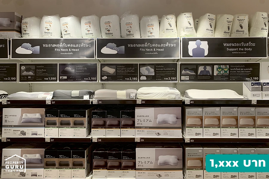 และหมอนมีเยอะหลายสิบแบบทั้งวัดุและรูปร่าง ใครของแบบนุ่มแบบแข็งมีครบ