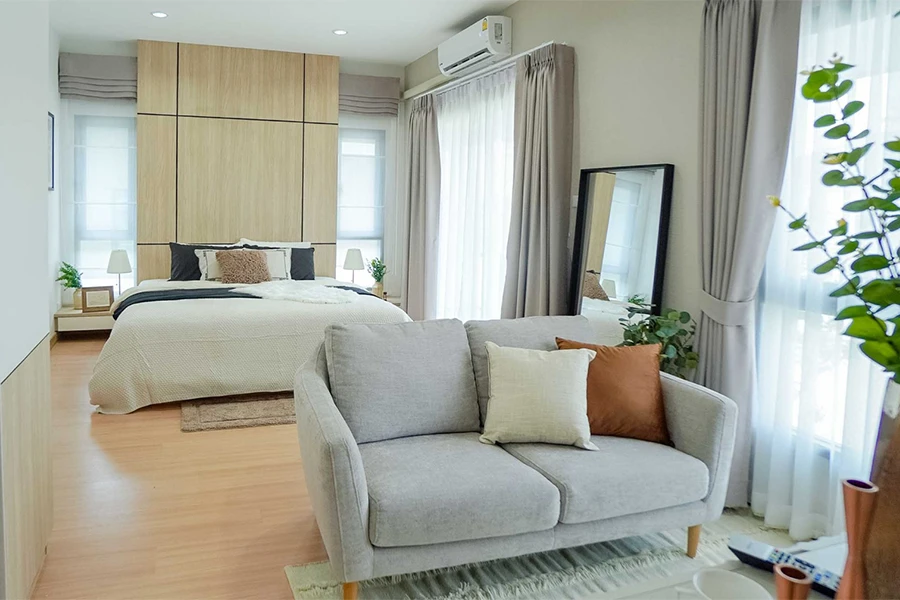 ห้องนอนใหญ่ กว้างเท่าหน้าบ้าน พักผ่อนได้เต็มที่ พร้อมห้องน้ำในตัว