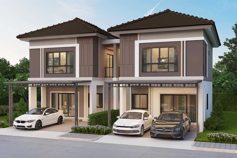 แบบแรก “นนลกาญจน์” บ้านแฝดฟังก์ชันบ้านเดี่ยว พื้นที่ใช้สอยมากกว่า รองรับได้ทุกกิจกรรม ขนาด 135 ตร.ม. จัดเต็มถึง 4 ห้องนอน 3 ห้องน้ำ 2 ที่จอดรถ เริ่มต้น 2.6 ล้านบาท*