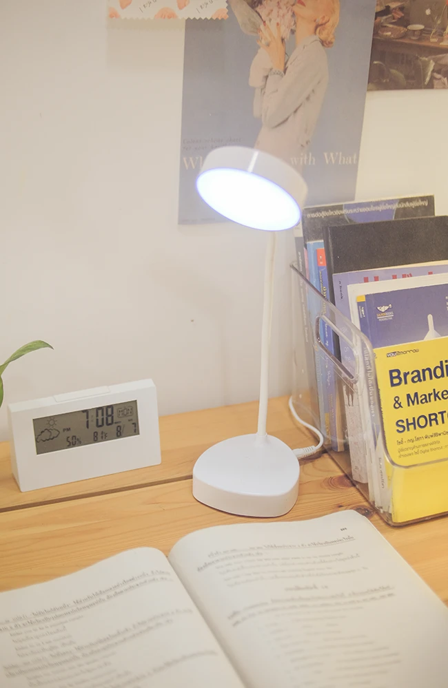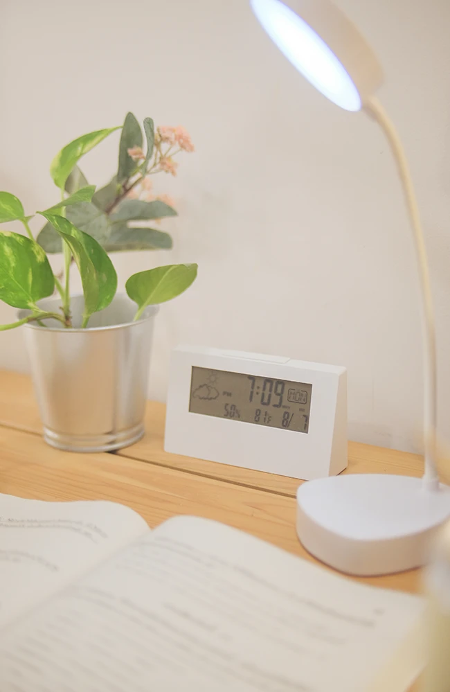 นาฬิกาดิจิตอลที่บอกตัวเลขเวลาได้อย่างเด่นชัด ให้เราสามารถจัดเวลาอ่านหนังสือให้มีประสิทธิภาพ และไม่หลุดสมาธิจากการดูเวลาผ่านมือถือ และยังสามารถบอกวันที่ อุณหภูมิ รวมถึงตั้งนาฬิกาปลุกได้อีกด้วย
