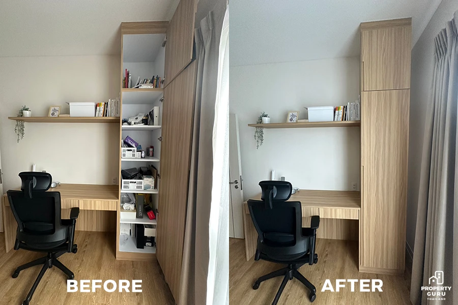 สำคัญที่สุดเลยคือ ตู้เก็บของต้องมีจำนวนมากพอ และเป็นหน้าบานปิดทึบซ่อนความรก