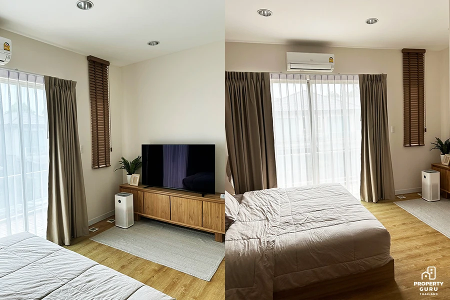 Master bedroom มีห้องน้ำในตัว และอีกห้องสำรองเอาไว้รับแขกกับเก็บพวกกระเป๋าเดินทางและเสื้อผ้าที่ไม่ค่อยได้ใช้