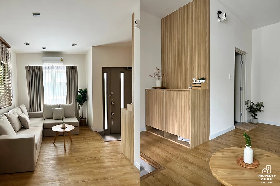 มุมรับแขกหน้าบ้านและตู้เก็บรองเท้า