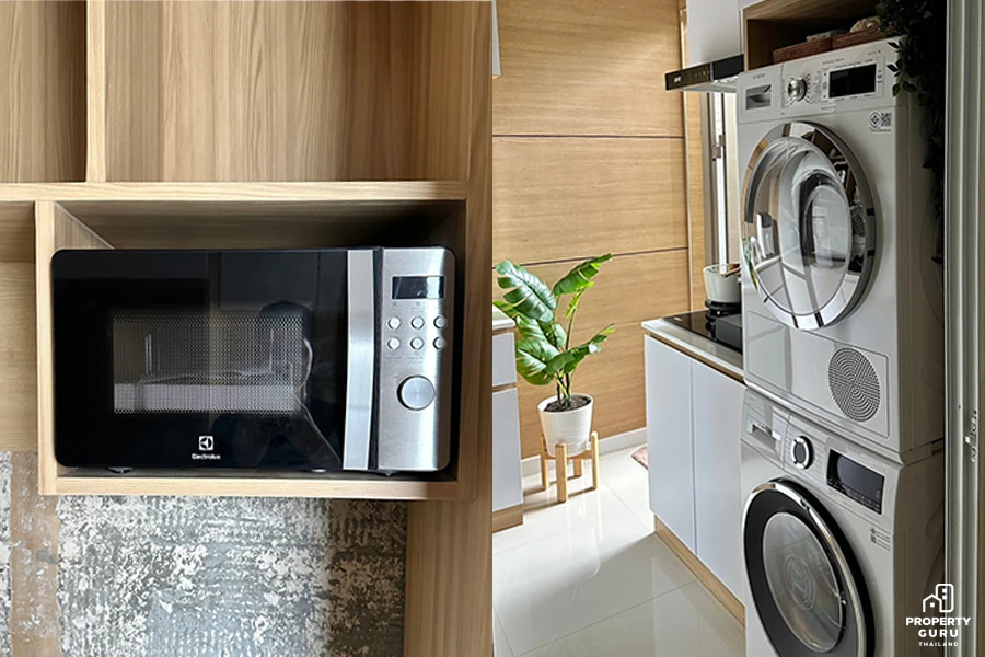 ส่วนเครื่องใช้ไฟฟ้า ไปเลือกมาเองวัดขนาดเอง และส่งให้ Interior เค้าจัดวาง ให้เหมาะสมกับพื้นที่บ้านแม้จะสวยขนาดนี้แต่ก็ไม่มีอะไรได้ดั่งใจเราเสมอไป