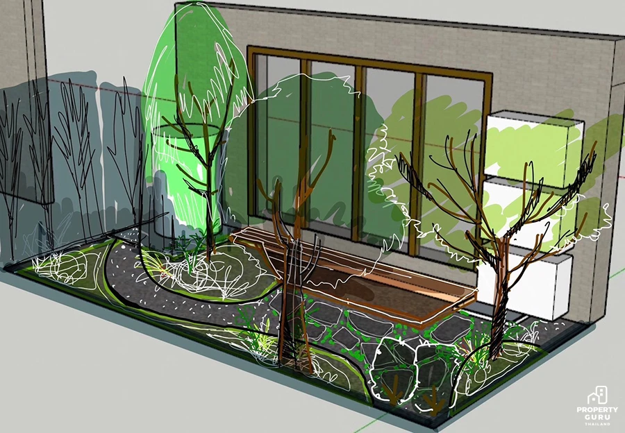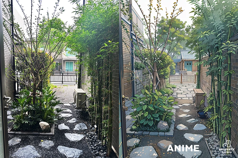 "ต้นไผ่" เลยครับจริงๆ อยากเลือกต้นอื่นให้นะ แต่ไผ่นี่แหละที่ดูให้ความเป็นญี่ปุ่นที่สุดแล้ว แต่แนะนำถ้าอยากได้ ฟีลญี่ปุ่นจริงๆ ต้องเอาต้นไม้หลายๆ ชนิดมารวมกัน แบบหลังบ้านน้อตจะใช้ทีมจัดสวน Lana มาช่วยดูแลให้ครับ
