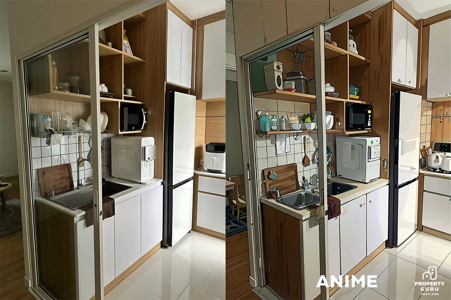 บริเวณครัวที่มีพื้นที่จำกัด ยิ่งทำให้มุมนี้เหมือนญี่ปุ่นเข้าไปใหญ่