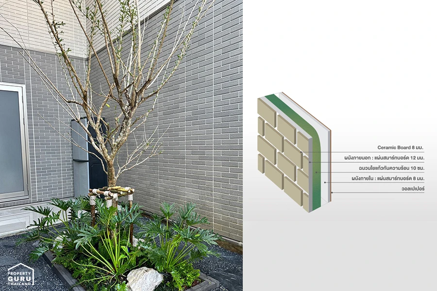 ผนังเซรามิกที่ทำความสะอาดตัวเองได้ ลดความร้อนภายในบ้าน ผนังในบ้านเป็น 2 ชั้น มีฉนวนและที่ซับเสียง