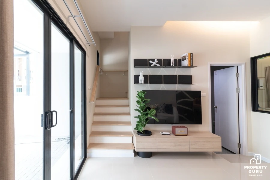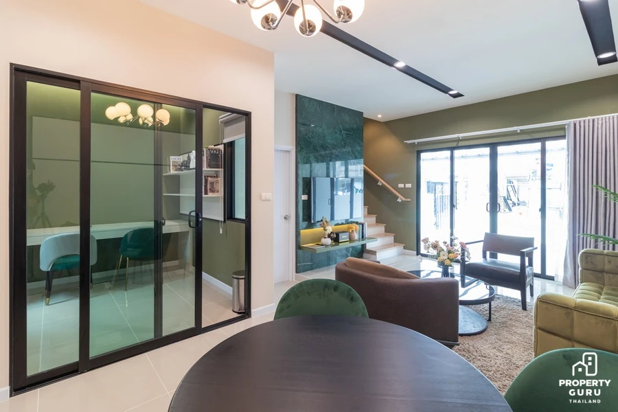 ห้องอเนกประสงค์กั้นด้วยประตูกระจกบานเลื่อน 2 ตอน อยู่ใกลักับห้องน้ำบริเวณชั้น 1