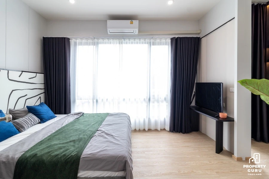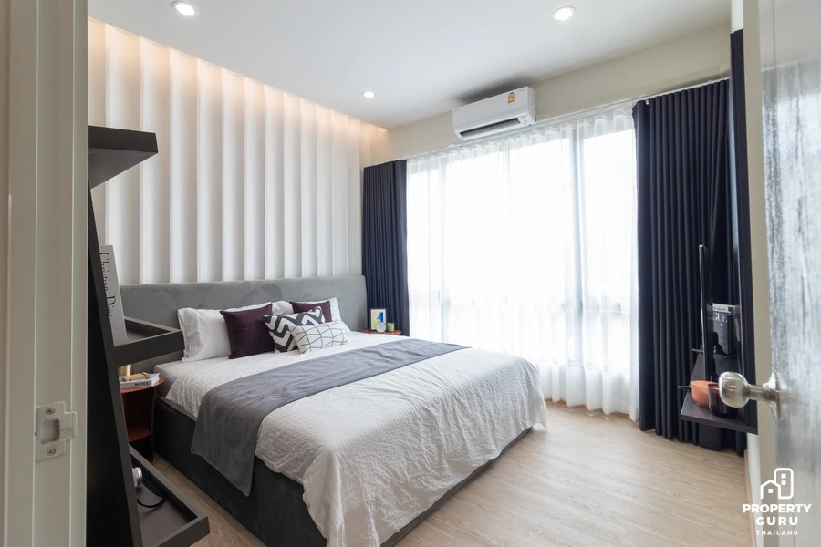 ห้อง Master bedroom ห้องนี้ยังคงได้หน้าต่างบานใหญ่ ทำให้ห้องดูโปร่ง
