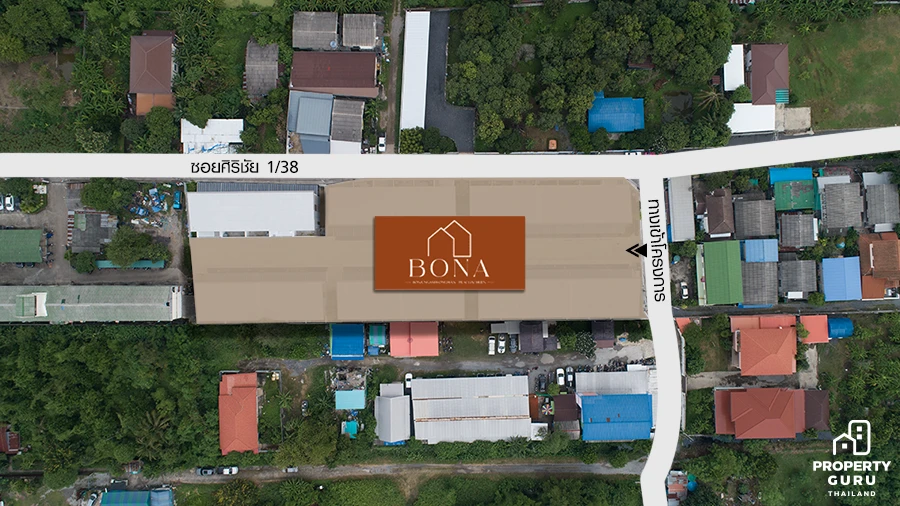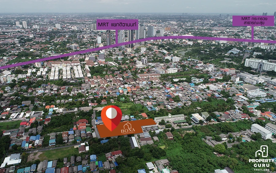 ภาพจากมุมสูงแสดงให้เห็นถึงพื้นที่โครงการ โบนา งามวงศ์วาน - ประชาชื่น