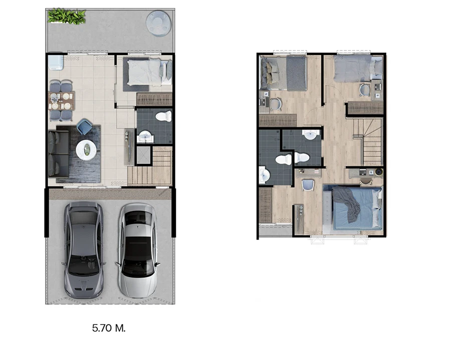 - BONA 5.7 : ขนาด 123.12 ตร.ม. พื้นที่ดินขั้นต่ำ 19.0 ตร.ว.