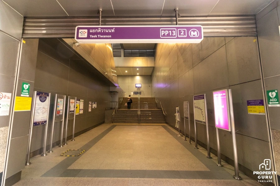 ระยะทางจากโครงการมายังรถไฟฟ้าสถานีติวานนท์ ประมาณ 1.6 กม.
