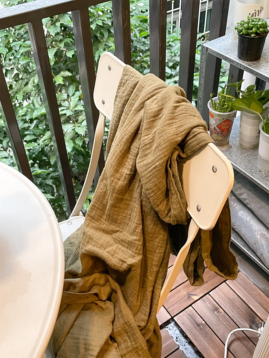 ผ้าห่มเนื้อนุ่ม ทำจากผ้าคอตตอน 100% เนื้อผ้าทอ 2 ชั้นลายปุยเมฆ เป็นใยธรรมชาติระบายอากาศได้ดี มีให้เลือกถึง 9 สี ไว้สำหรับห่มตัวเวลาลมพัดมายามเรานั่งพักผ่อนที่ระเบียง