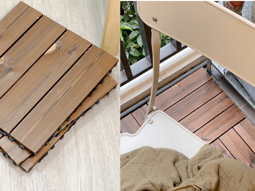 ไอเทมที่จะช่วยเปลี่ยนระเบียงแบบเดิมๆ ให้ดูแตกต่างได้ทันตา พื้นระเบียงใครเป็นกระเบื้องหรือปูนเรียบๆ เพิ่มสไตล์ได้ด้วยแผ่นไม้ตกแต่ง ติดตั้งเองได้ง่ายๆ กันน้ำกันฝน ทนทานต่อแดดในราคาหลักสิบต่อแผ่นเท่านั้น