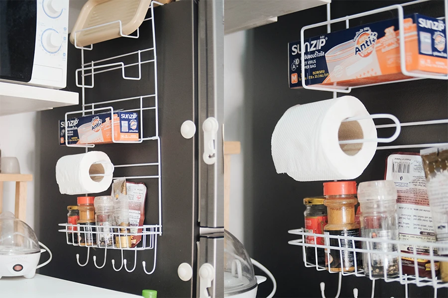 4. ที่แขวนของข้างตู้เย็นพร้อมแกนใส่ทิชชู่