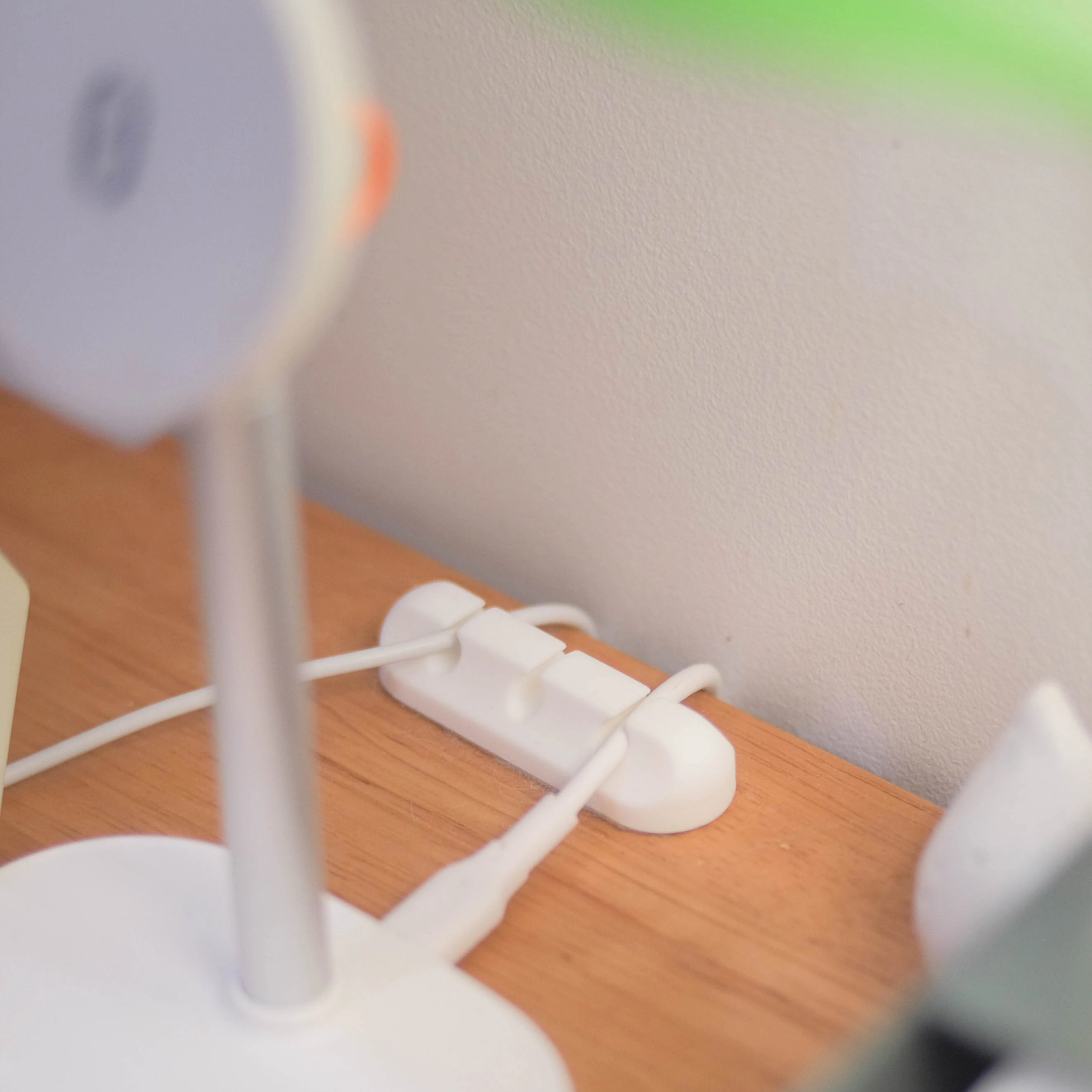 ตัวจัดระเบียบสายไฟบนโต๊ะ ทำจากซิลิโคนสีขาวดูมินิมอลไม่ขัดตา มาพร้อมกาวในตัวไม่ต้องเจาะ ช่วยจัดสายไฟบนโต๊ะให้ไม่พันกัน หยิบใช้ง่าย และดูเป็นระเบียบ