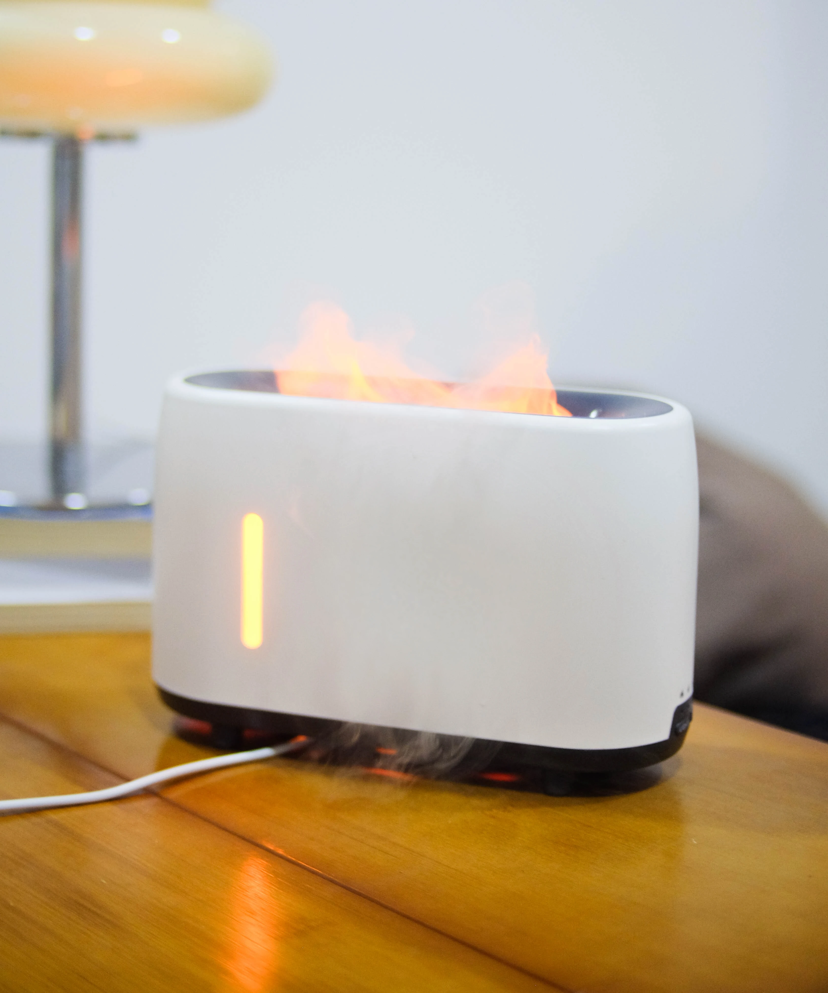 เครื่องพ่นที่พ่นไอน้ำออกมาเหมือนกับเปลวไฟในเตาผิง ช่วยเพื่มความชื้นในอากาศ ทำให้ผิวไม่แห้ง สามารถเปลี่ยนไฟได้ 3 สี เหมาะกับวางเพิ่มบรรยากาศในห้องนั่งเล่น