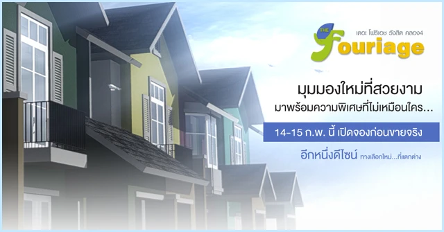 วังทองกรุ๊ป เตรียมเปิดตัวทาวน์โฮมดีไซน์ใหม่ "เดอะ โฟริเอช รังสิต คลอง 4 (The Fouriage)" ทาวน์โฮม 2 ชั้น หน้ากว้าง 6 เมตร เนื้อที่ 26 ตร.ว. ขนาด 3 ห้องนอน 3 ห้องน้ำ และที่จอดรถ 2 คัน มาพร้อมความพิเศษที่ไม่เหมือนใครด้วยดีไซน์บ้านที่แตกต่างและโดดเด่น อีกทั้งยังตั้งอยู่บนทำเลในการอยู่อาศัยที่สุดแสนจะสะดวกสบาย บน ถ.รังสิต-ลำลูกกา คลอง 4 สามารถเข้า-ออกได้หลายทาง ใกล้จุดเชื่อมกับทางด่วนอีกมากมาย พร้อมถนนใหม่กว้าง 4 ช่องจราจร, ใกล้สถานีรถไฟฟ้าในอนาคต ทั้งสถานีตลาดรังสิต หรือสถานีลำลูกกา ครบครันด้วยแหล่งอำนวยความสะดวก ห้างสรรพสินค้า โรงเรียน โรงพยาบาล พร้อมให้ลงทะเบียนรับสิทธิพิเศษก่อนใคร และเปิดให้จอง 14-15 ก.พ.นี้