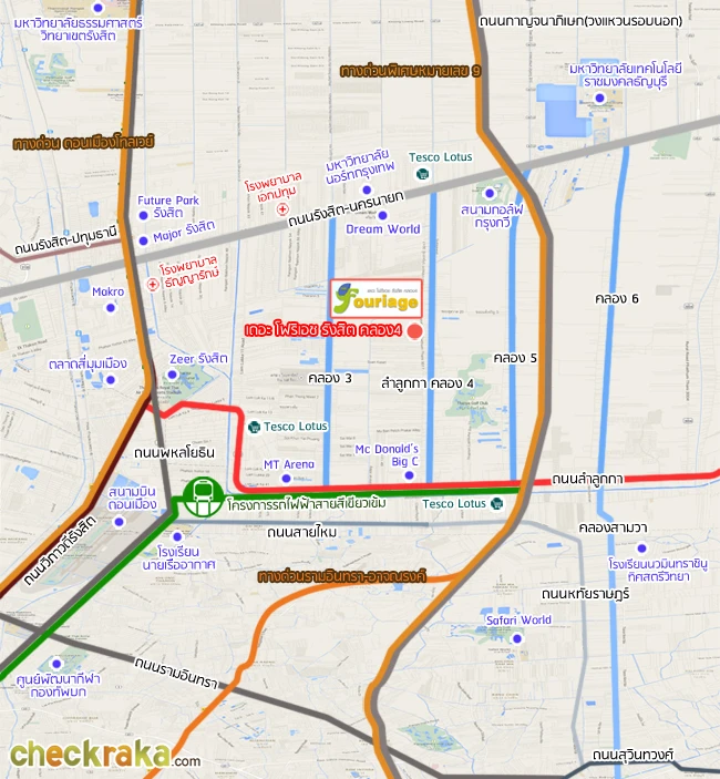 แผนที่ตั้งโครงการ เดอะ โฟริเอช รังสิต คลอง 4 และสถานที่สำคัญใกล้เคียง