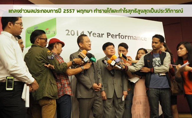 นายทองมา วิจิตรพงศ์พันธุ์ และนายเลอศักดิ์ จุลเทศ เริ่มการแถลงข่าวผลประกอบการประจำปี 2557