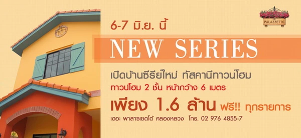 ทาวน์โฮม เดอะ พาลาซเซตโต้ คลองหลวง เปิดให้จองบ้านดีไซน์ใหม่ NEW SERIES ทัสคานีทาวน์โฮม ทาวน์โฮม 2 ชั้น หน้ากว้าง 6 เมตร เนื้อที่ห้องกลาง 21.30 ตร.ว. ห้องมุม 30 ตร.ว. พื้นที่ใช้สอย 112 ตร.ม. ฟรี! ทุกรายการ