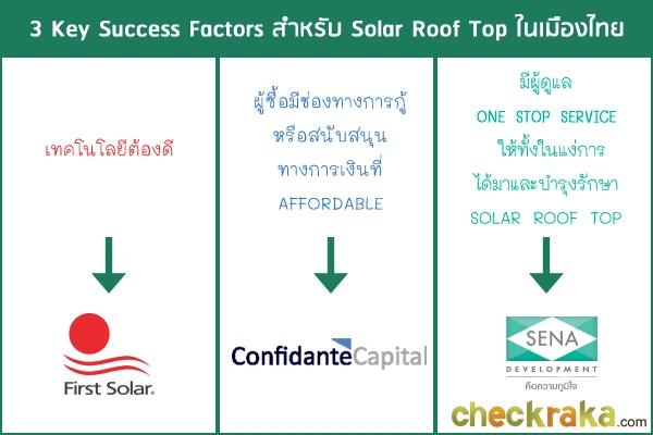 นายโสภณ อัศวานุชิต ผู้บริหาร ConfidanteCapital ที่ปรึกษาด้านการลงทุนในธุรกิจพลังงานทางเลือก ที่มีความเชี่ยวชาญด้านการลงทุนในธุรกิจพลังงานแสงอาทิตย์ มีความมั่นใจในการจับมือกันระหว่างพันธมิตรดังกล่าว จากศักยภาพการดำเนินธุรกิจของ SENA ในฐานะที่เป็นผู้ประกอบการอสังหาริมทรัพย์ชั้นแนวหน้าของเมืองไทย ที่มีแผนเปิดโครงการใหม่อย่างต่อเนื่อง และมีประสบการณ์ธุรกิจมายาวนานกว่า 30 ปี ถือเป็นจุดแข็งในการดำเนินธุรกิจ และพันธมิตรอย่างเฟิร์สโซล่าร์ ซึ่งมีชื่อเสียงเป็นที่ยอมรับในระดับโลก และถูกเลือกใช้โดยบริษัทยักษ์ใหญ่ของโลกหลายบริษัท เช่น บริษัท Apple Inc และ Berkshire hatahway ของกลุ่ม Warren Buffet ให้เป็นผู้ดำเนินการก่อสร้าง บริหารและซ่อมบำรุงในโครงการโซล่าร์ฟาร์มโทปาซ ซึ่งเป็นโครงการโรงไฟฟ้าพลังงานแสงอาทิตย์ขนาดใหญ่ที่สุดในโลก