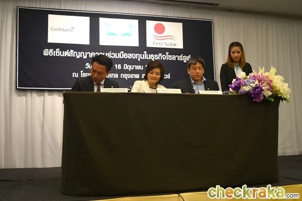 กรรมการและผู้บริหารทั้ง 3 ท่านขณะลงนามเซ็นสัญญาร่วมมือลงทุนในธุรกิจโซลาร์ รูฟ