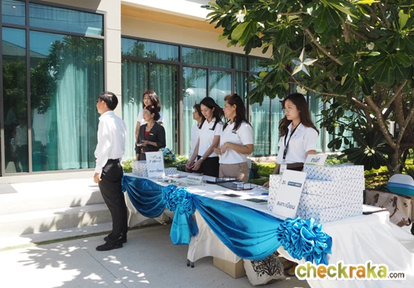 จุดลงทะเบียนสื่อมวลชนก่อนเข้างาน ด้านหน้าสำนักงานขายโครงการ Perfect Masterpiece รัตนาธิเบศร์