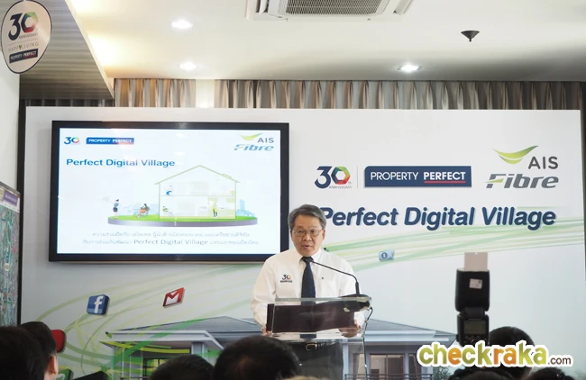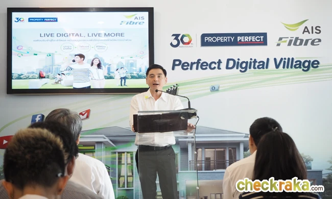 นอกเหนือจากรูปแบบโครงการและแบบบ้านที่สวยงาม สิ่งแวดล้อมที่ดี และสิ่งอำนวยความสะดวกทันสมัย ลูกค้าของ พร็อพเพอร์ตี้ เพอร์เฟค ยังจะได้รับบริการด้วยเทคโนโลยีที่ดีที่สุดถึงที่พักอาศัย ภายใต้มาตรฐานที่เชื่อถือได้ และเครือข่ายที่ใหญ่ที่สุดในวันนี้ ความร่วมมือกับ AIS ในการพัฒนา Perfect Digital Village เริ่มจากโครงการที่ดำเนินการอยู่ในปัจจุบัน ทั้งแนวราบและแนวสูง และมีแผนต่อยอดไปยังโครงการที่จะเกิดขึ้นในอนาคต นอกจากนี้ ยังมีความร่วมมือในการมอบสิทธิประโยชน์ต่างๆ ให้กับลูกค้าทั้งของบริษัท และลูกค้าเอไอเอส เนื่องในโอกาสพิเศษที่ พร็อพเพอร์ตี้ เพอร์เฟค ดำเนินการครบรอบ 30 ปี ในปีนี้อีกด้วย"