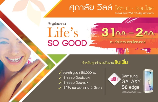 เชิญร่วมงาน Life's so Good ณ สำนักงานขายโครงการ วันที่ 31 กรกฎาคม - 2 สิงหาคม 2558 พิเศษ จองในงานรับเพิ่ม