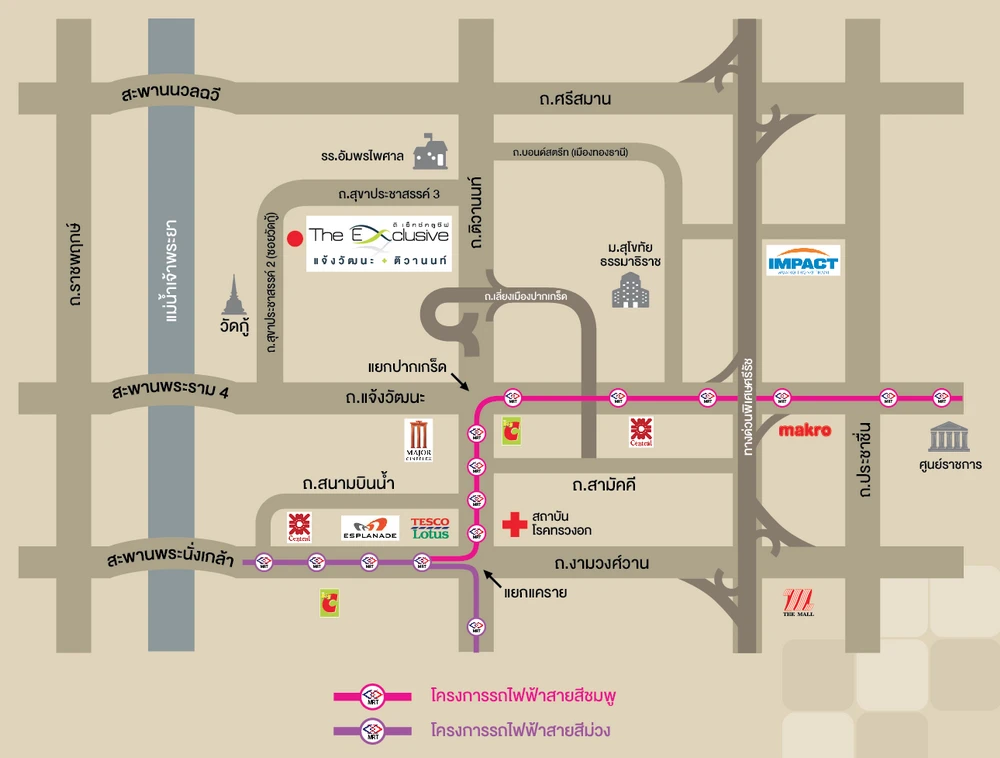 ดิ เอ็กซ์คลูซีฟ แจ้งวัฒนะ - ติวานนท์ (The Exclusive Chaengwattana-Tiwanon) เป็นทาวน์โฮม 2 ชั้น สไตล์โมเดิร์น เดินทางสะดวกด้วยโครงการรถไฟฟ้า BTS สายสีชมพู และถนนสายหลัก อาทิ ถนนติวานนท์, ถนนงามวงศ์วาน, ถนนแจ้งวัฒนะ สะดวกสบายด้วยแหล่งอำนวยความสะดวกรายล้อมโครงการ ห้างสรรพสินค้า อาทิ เซ็นทรัลแจ้งวัฒนะ, โฮมโปรแจ้งวัฒนะ, บิ๊กซีแจ้งวัฒนะ, เมเจอร์ฮอลลีวูด แจ้งวัฒนะ สถานศึกษา อาทิ โรงเรียนพิชญศึกษา, โรงเรียนอัมพรไพศาล, โรงเรียนพระหฤทัยนนทบุรี และสถานที่สำคัญอย่าง อิมแพคอารีน่า เมืองทองธานี และศูนย์ราชการเฉลิมพระเกียรติ เป็นต้น
