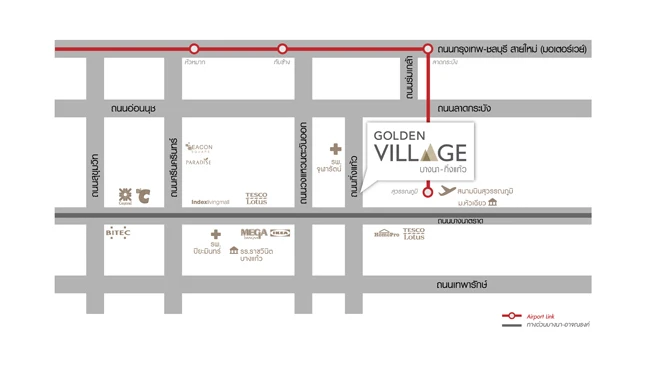 แผนที่โครงการโกลเด้น วิลเลจ บางนา-กิ่งแก้ว
