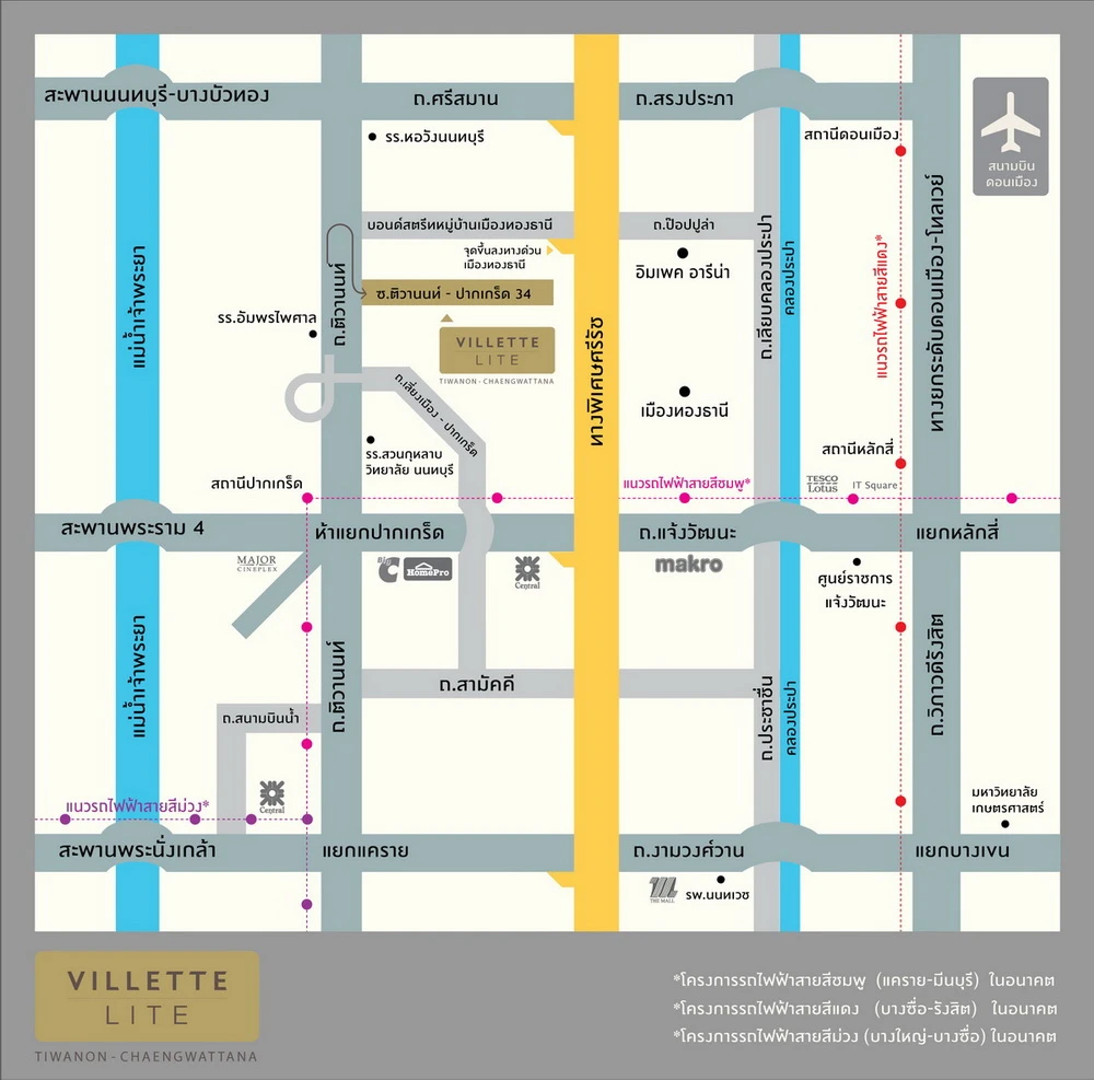 วิลเลต ไลท์ ติวานนท์-แจ้งวัฒนะ (Villette Lite Tiwanon-Chaengwattana) เป็นทาวน์โฮม 2 ชั้น หน้ากว้าง 5 เมตร 3 ห้องนอน 2 ห้องน้ำ ที่จอดรถ 2 คัน ออกแบบบ้านสไตล์ Modern พร้อมกับพื้นที่ส่วนกลางครบครัน ทั้งสวนสาธารณะใจกลางโครงการ Jogging Track เพื่อวิ่งออกกำลังกาย ตั้งอยู่ในทำเลศักยภาพ บนถนนติวานนท์ ใกล้จุดขึ้นลงทางด่วนเมืองทองธานี จุดขึ้นลงทางด่วนแจ้งวัฒนะ และรถไฟฟ้าสายสีชมพู สถานีปากเกร็ด