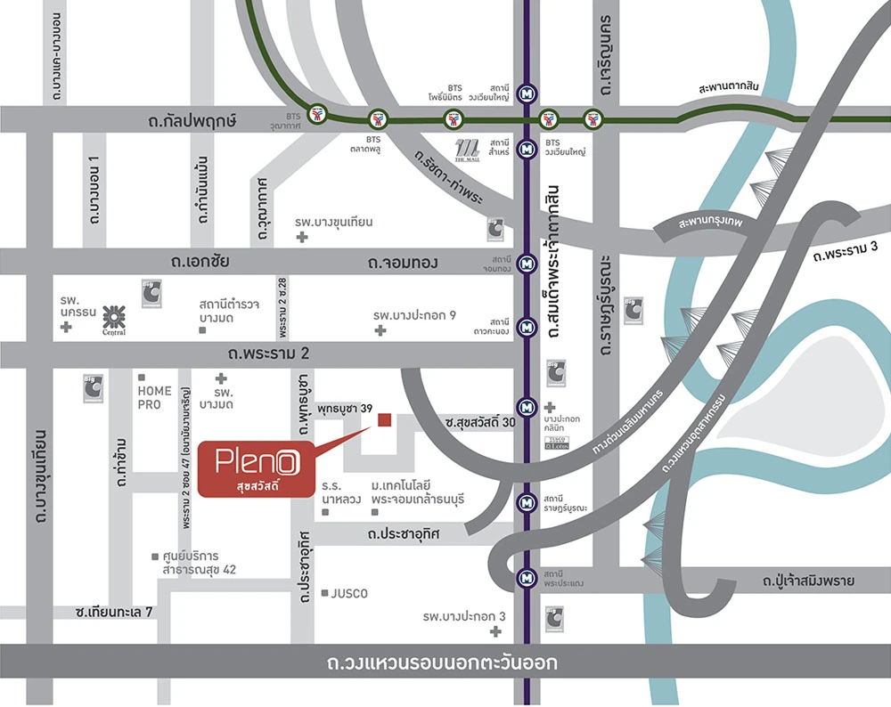 โครงการตั้งอยู่ในซอยสุขสวัสดิ์ 66 เดินทางสะดวกสบาย ด้วยทำเลใกล้ทางด่วน และเชื่อมต่อถนนสายหลักได้หลากหลาย อาทิ ถนนพระราม 2, ถนนพระราม 3, ถนนสุขสวัสดิ์, ถนนกาญจนาภิเษก, ถนนพุทธบูชา, ทางพิเศษเฉลิมมหานคร และถนนวงแหวนอุตสาหกรรม ทำเลที่ตั้งใกล้กับโรงเรียนสวนกุหลาบวิทยาลัยธนบุรี, โรงเรียนนาหลวง, มหาวิทยาลัยเทคโนโลยีพระจอมเกล้าธนบุรี, เมเจอร์ ฮอลลีวูด, บิ๊กซี, จัสโก้, เซ็นทรัลพลาซ่า พระราม 2, เทสโก้ โลตัส และโฮมโปร สิ่งอำนวยความสะดวกภายในโครงการสะดวกครบครันด้วย สระว่ายน้ำ, คลับเฮ้าส์, ฟิตเนส, สวนสาธารณะภายในโครงการ และระบบรักษาความปลอดภัย CCTV ตลอด 24 ชั่วโมง