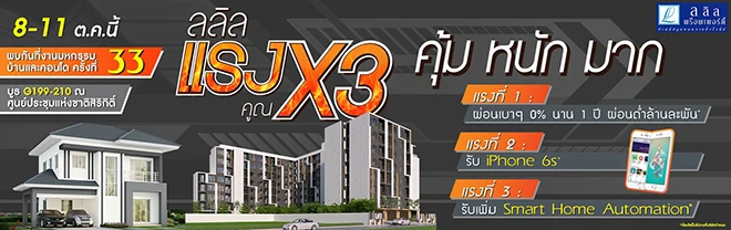 "ลลิล พร็อพเพอร์ตี้" จัดโปรหนักอัดโปรโมชั่น "แรงคูณ 3 คุ้ม หนัก มาก" ในงานมหกรรมบ้านและคอนโด