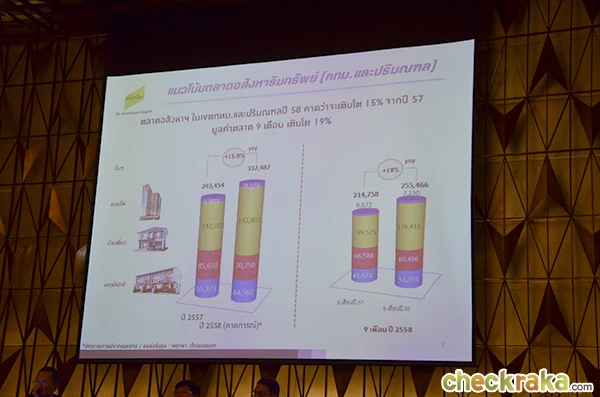 "ด้านภาพรวมตลาดอสังหาริมทรัพย์ในเขตกรุงเทพฯ และปริมณฑลในช่วง 9 เดือนที่ผ่านมา มีมูลค่าตลาด 255,466 ล้านบาท เติบโตเพิ่มขึ้น 19% เมื่อเทียบกับช่วงเดียวกันของปีก่อน ในขณะที่สถานการณ์ตลาดอสังหาริมทรัพย์ในช่วงโค้งสุดท้ายก่อนสิ้นปี ที่รัฐบาลมีมาตรการสนับสนุน ในการลดค่าธรรมเนียมการโอนและค่าจดจำนอง เหลือเพียง 0.01% นอกจากช่วยให้ลูกค้าที่โอนบ้านภายในปีนี้ได้รับประโยชน์แล้ว ในขณะเดียวกันผู้ประกอบการก็สามารถมีรายได้จากการโอนบ้านก่อนสิ้นปีนี้ด้วย โดยคาดว่าทั้งปีตลาดอสังหาริมทรัพย์น่าจะเติบโตอยู่ที่ 15% คาดว่าจะมีมูลค่าตลาดรวม 337,487 ล้านบาท ท่ามกลางสภาวะเศรษฐกิจที่ชะลอตัวในขณะนี้" คุณทองมากล่าว