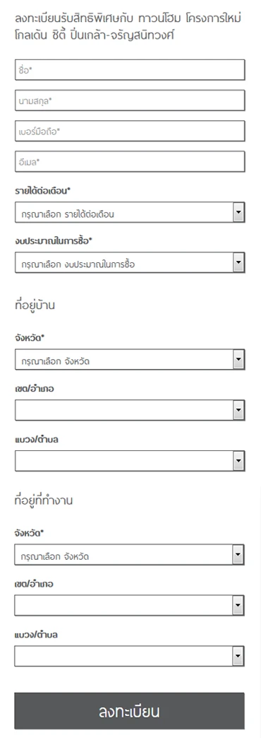 โกลเด้นแลนด์ เรสซิเด้นซ์ เปิดให้ลงทะเบียนจองทาวน์โฮมโครงการใหม่ 2 โครงการ 2 ทำเล กับโครงการ โกลเด้น ซิตี้ ปิ่นเกล้า-จรัญสนิทวงศ์ และโครงการ โกลเด้น ทาวน์ พระราม 2 ทาวน์โฮม 4 ห้องนอนโครงการใหม่ ใกล้รถไฟฟ้า ท่านที่สนใจสามารถลงทะเบียนเพื่อรับส่วนลดเพิ่ม ได้ที่เว็บไซต์ของโกลเด้นแลนด์ เรสซิเด้นซ์