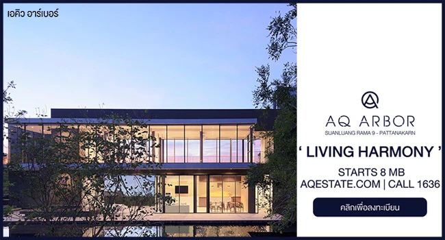บริษัท เอคิว เอสเตท จำกัด (มหาชน) เปิดตัวบ้านเดี่ยวโครงการใหม่ "เอคิว อาร์เบอร์ สวนหลวง ร.9 - พัฒนาการ (AQ Arbor Suanluang Rama 9-Pattanakarn)" บ้านเดี่ยว 3 ชั้น มีทั้งหมด 113 ยูนิต บนพื้นที่กว่า 27 ไร่ท่ามกลางธรรมชาติ บนทำเลศักยภาพ พร้อมคลับเฮ้าส์และพื้นที่ส่วนกลางขนาดใหญ่ โดยเปิดให้ลงทะเบียนผ่านเว็บไซต์เพื่อรับสิทธิพิเศษก่อนใครแล้ววันนี้