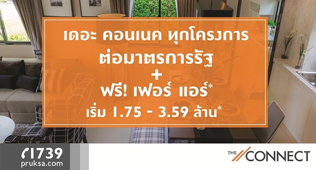 เดอะคอนเนค ทุกโครงการ "ต่อมาตรการรัฐ" + ฟรี! เฟอร์ แอร์* เริ่ม 1.75 - 3.59 ล้านบาท*