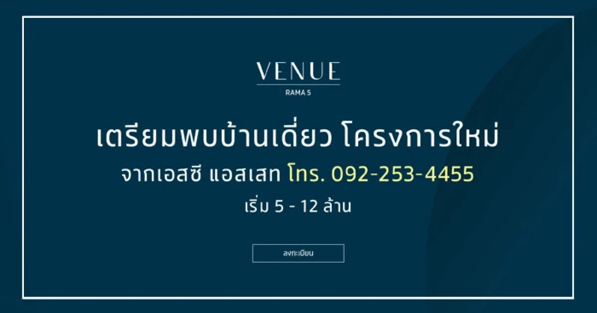 เตรียมพบบ้านเดี่ยวโครงการใหม่ "VENUE RAMA 5" จาก เอสซี แอสเสทฯ เริ่ม 5 - 12 ล้านบาท