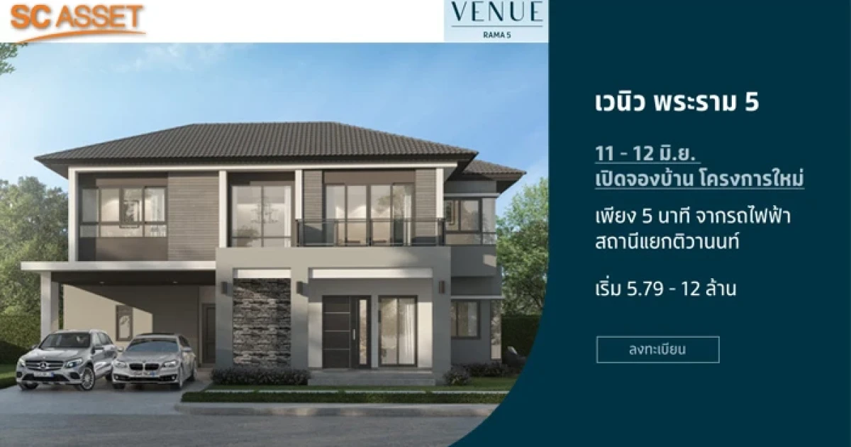 หลังจากปิดการขายถึง 2 โครงการพร้อมกัน ที่โครงการ แกรนด์ บางกอก บูเลอวาร์ด ราชพฤกษ์-รัตนาธิเบศร์ กับโครงการ ไลฟ์ บางกอก บูเลอวาร์ด พระราม 5 บริษัท เอสซี แอสเสท คอร์ปอเรชั่น จำกัด (มหาชน) เตรียมเปิดโครงการล่าสุดเป็นบ้านนิวซีรีส์แบรนด์ใหม่ โครงการ "เวนิว พระราม 5 (VENUE RAMA 5)" พื้นที่โครงการ 13-3-76 ไร่ มูลค่าโครงการ 440 ล้านบาท เพียง 56 หลัง ราคา 5.79 - 12 ล้านบาท